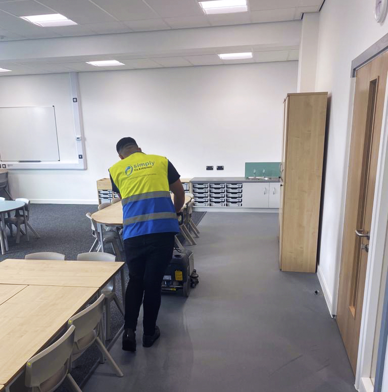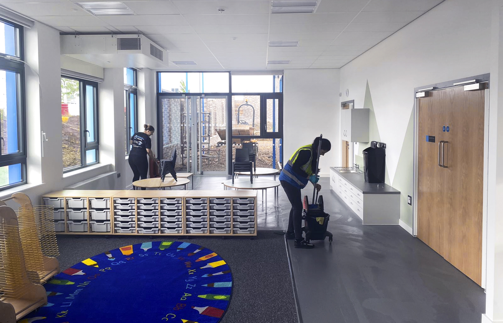 As you can imagine, this was no small feat – two floors, many classrooms, staff offices and a large sports hall, and many more facilities – but our specialist construction site cleaners were out on force making sure that the school was left flawless.