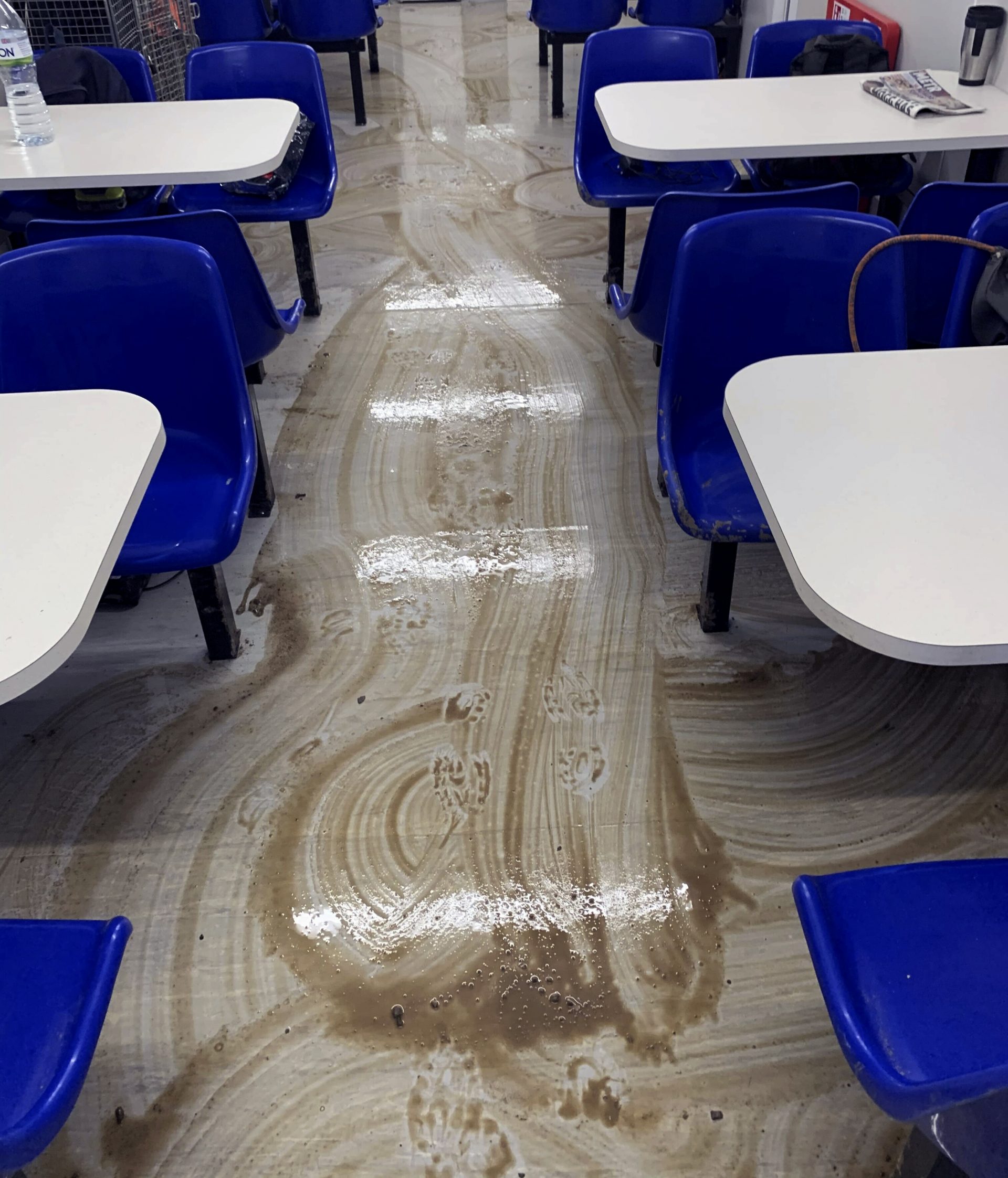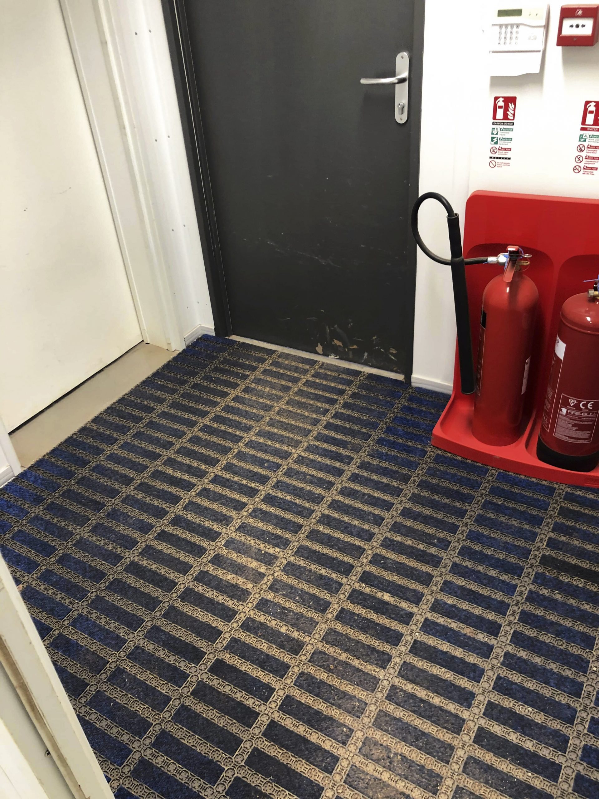Again, the security entrance had a thorough clean, desk, doors, walls, you name it, but the floor was given particular attention here. Using degreasers and other specialist floor cleaners to bring the life back into the floor once more.
